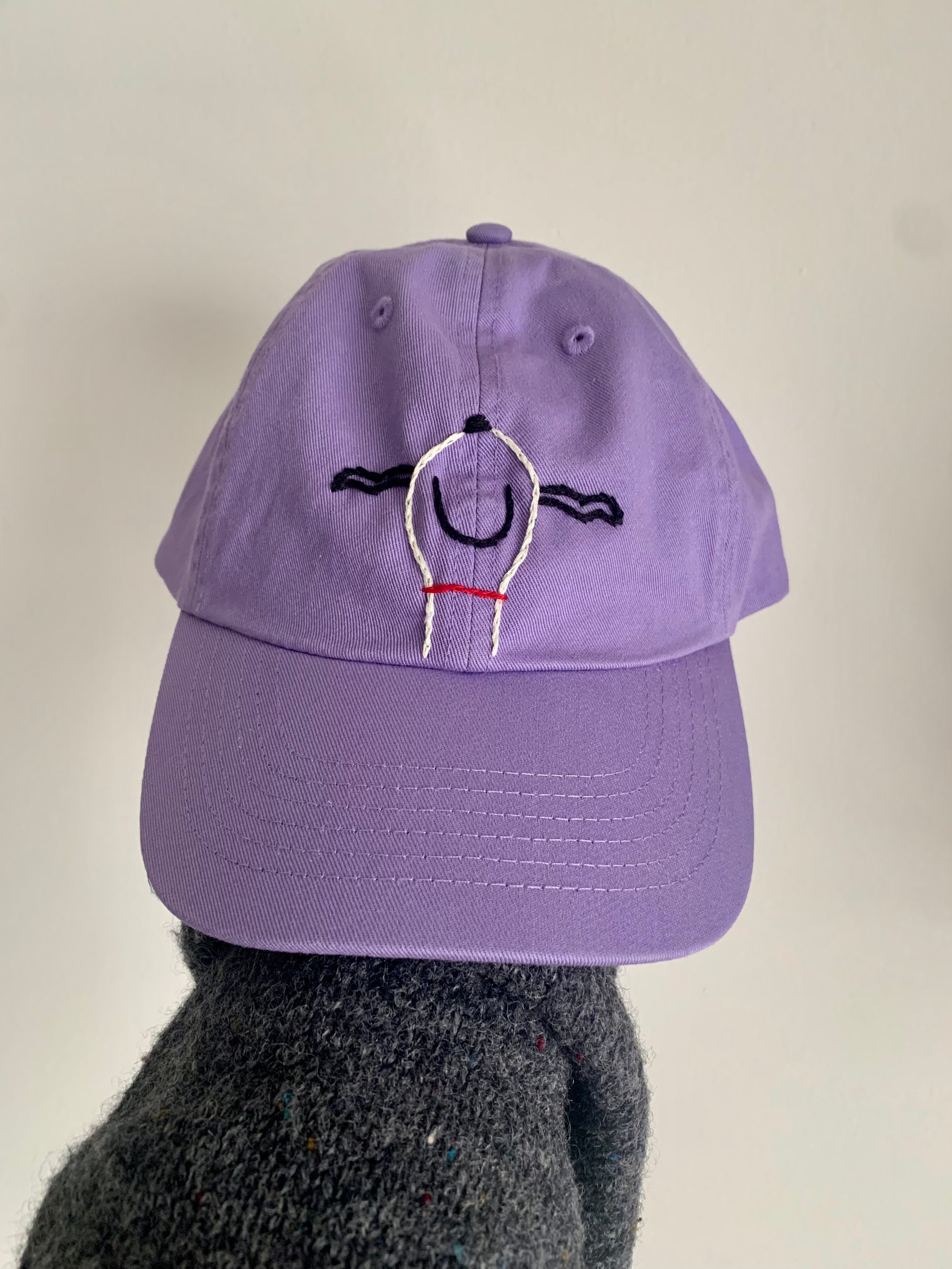 Hand embroidered on an adjustable one size fits most adult sized hat:)