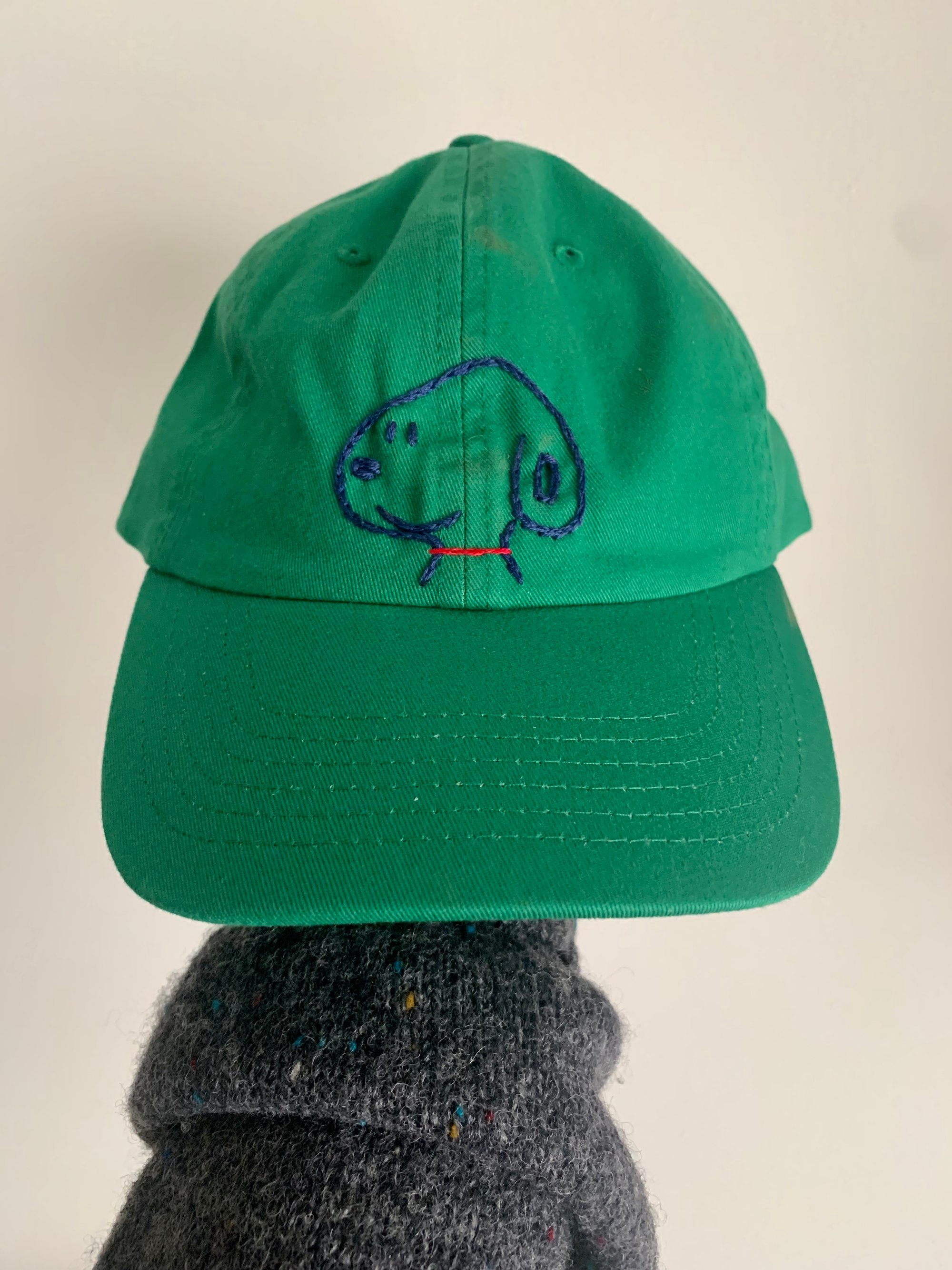 Hand embroidered on an adjustable one size fits most adult sized hat:)