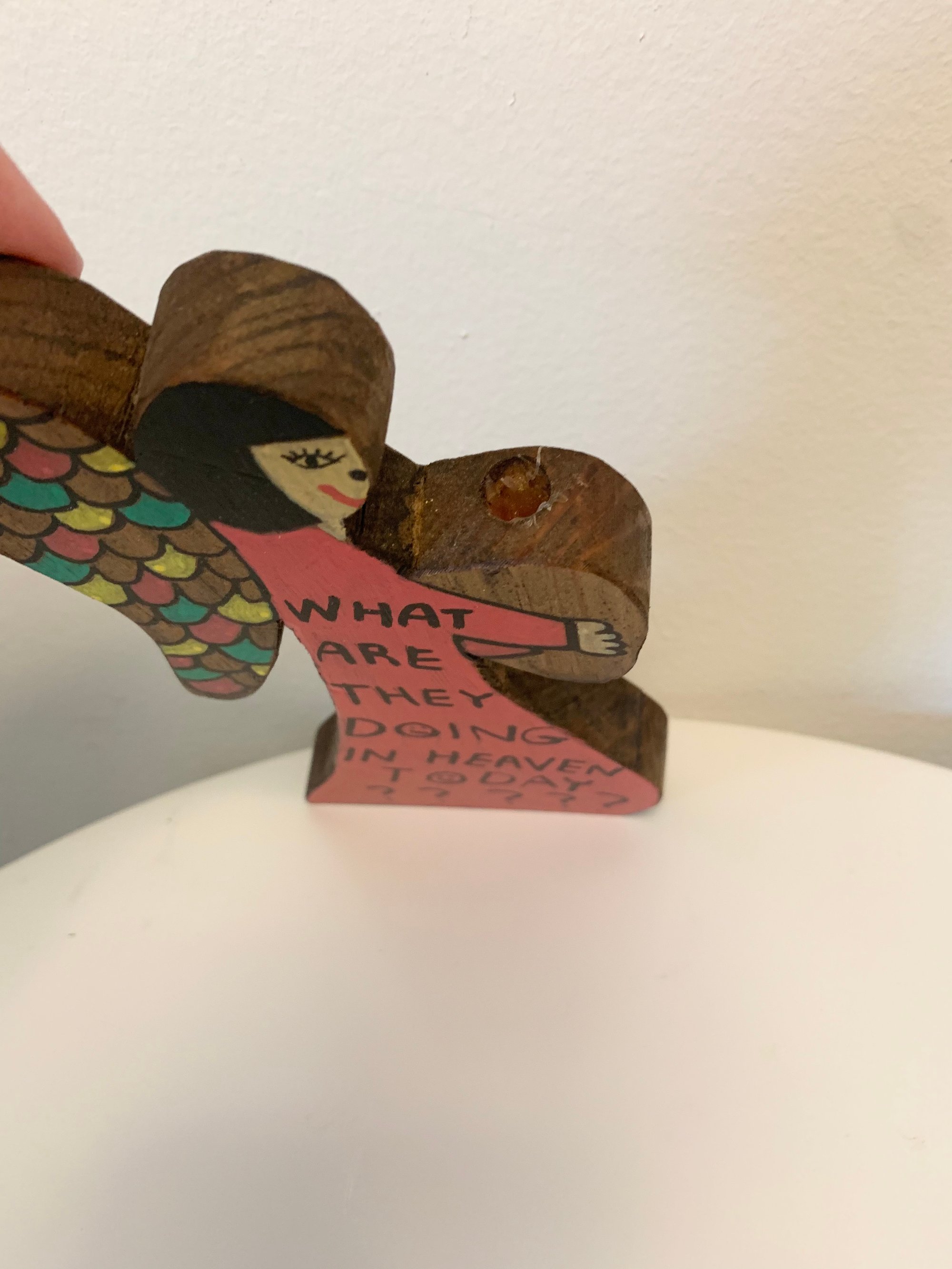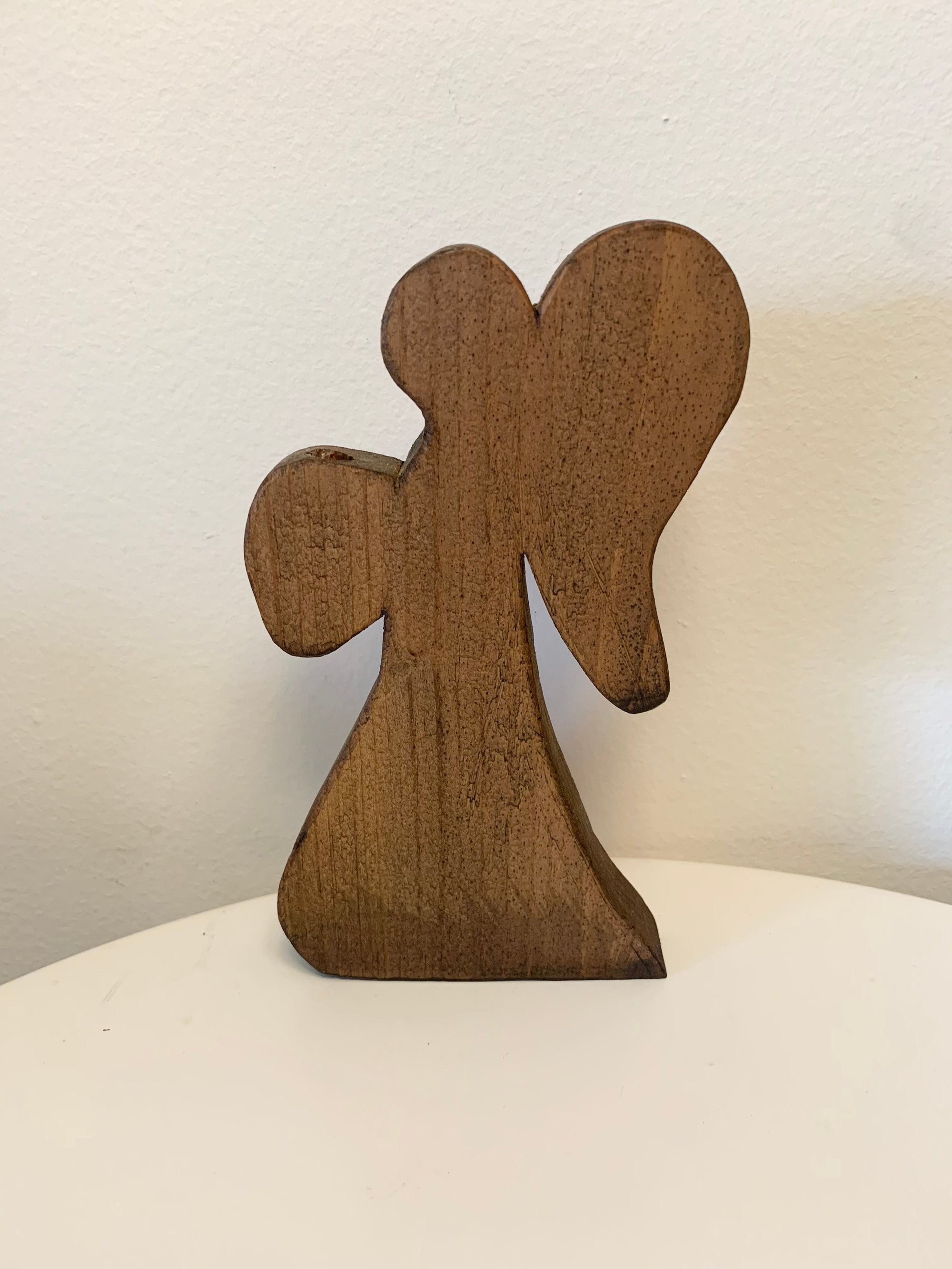 Wooden angel, candle hole above hands