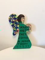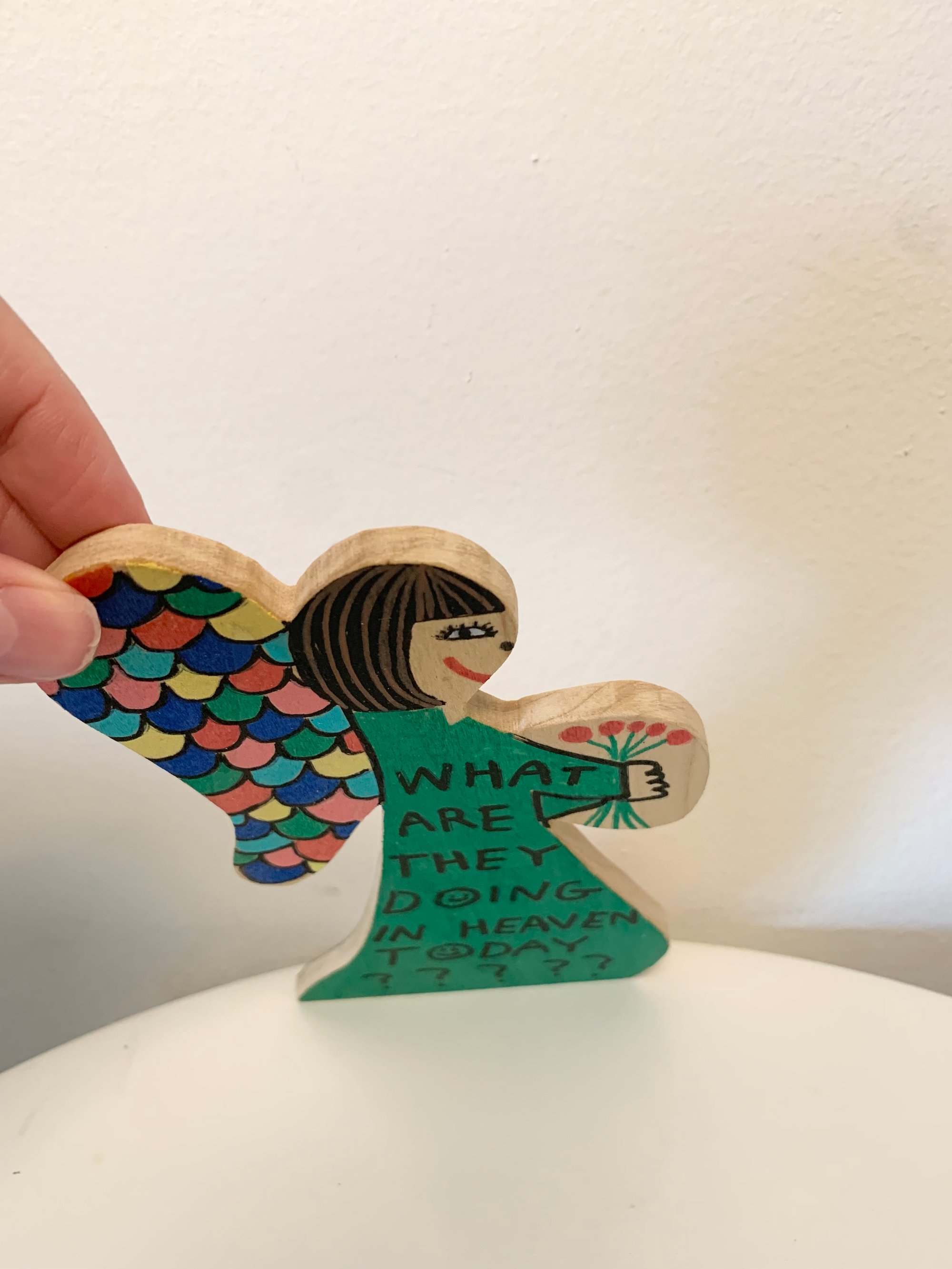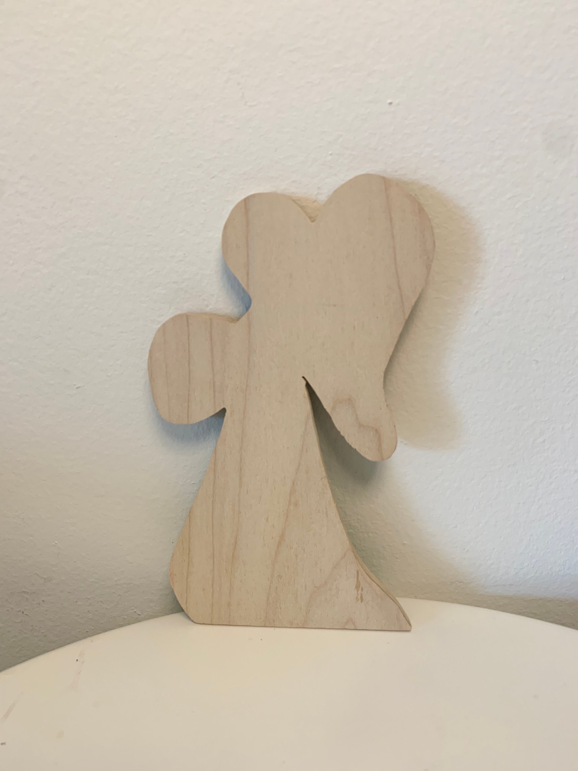 Wooden angel , thin piece of wood so she can’t stand upright on her own:)