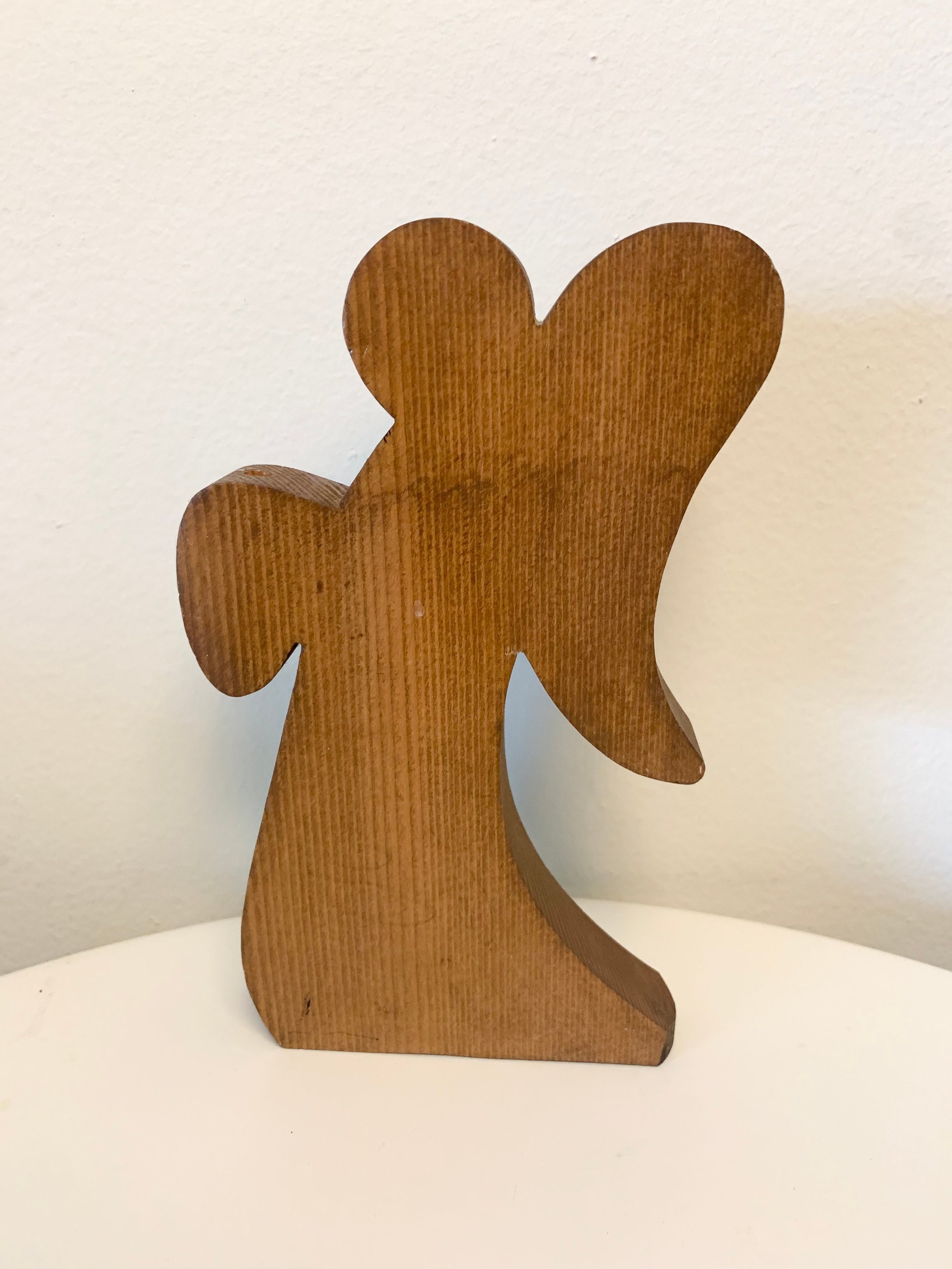 Wooden angel, small candle hole above hands